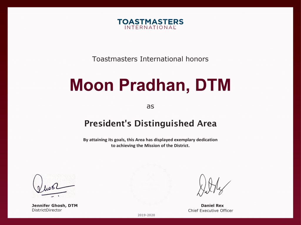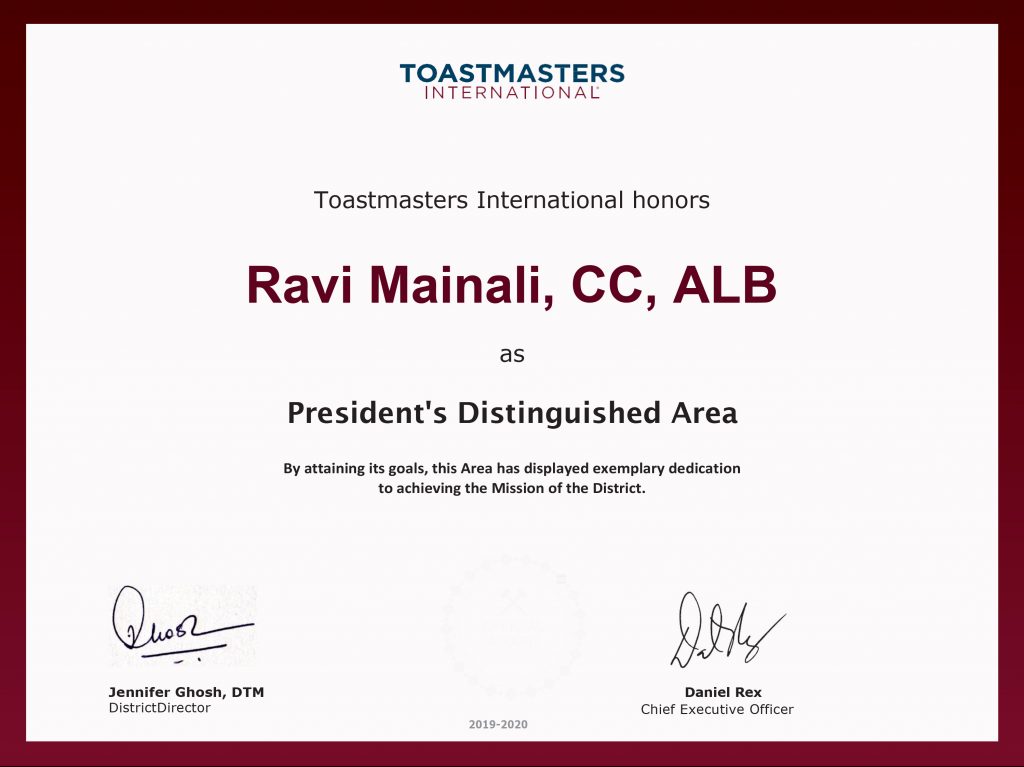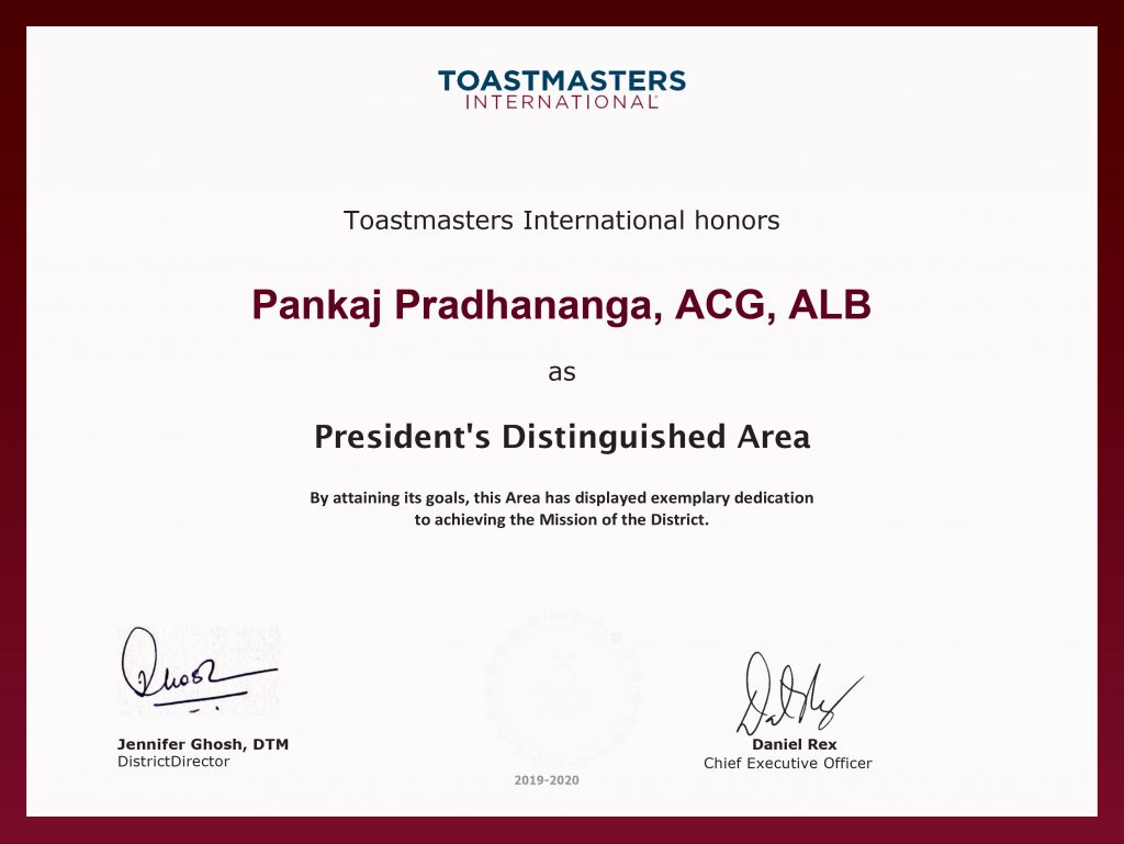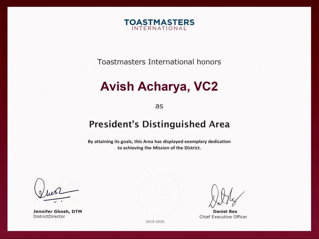 President's Area Distinguished Recognitions 2019-20