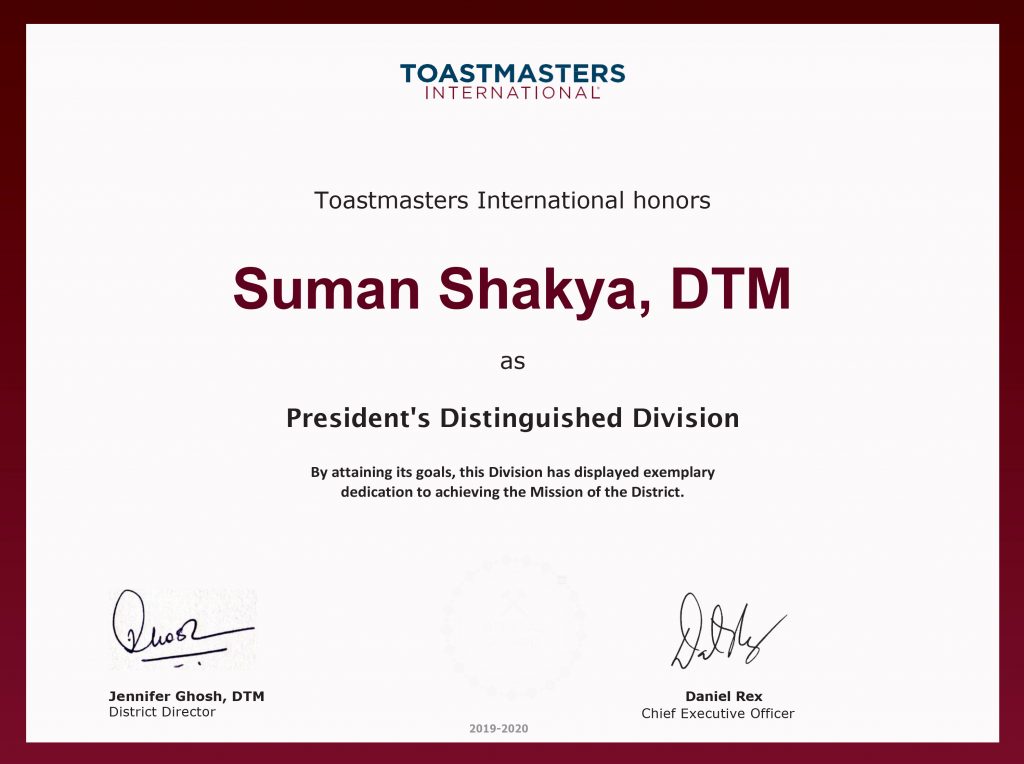 President's Distinguished Division Recognition 2019-20